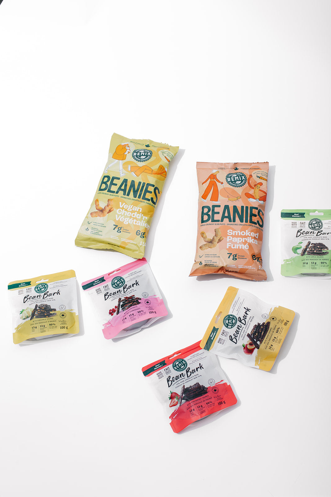 Remix Snacks va encore plus loin dans le domaine de la durabilité car nous créons des Beanies avec des carottes imparfaites et recyclées. Il s'agit de carottes de bonne qualité qui sont rejetées au niveau de la chaîne alimentaire de distribution parce qu'elles ne répondent pas aux normes cosmétiques ou esthétiques élevées que les consommateurs ont pour les produits. Par exemple, elles ne sont peut-être pas parfaitement lisses, mais elles sont tout de même de grande qualité et ont le même contenu nutritionnel. En fait, plus de 58 % des fruits et légumes cultivés au Canada sont gaspillés, et plus de 40 % de ce gaspillage est dû au fait que des imperfections sont jetées. Merci de nous aider à réduire le gaspillage alimentaire, une collation à la fois !